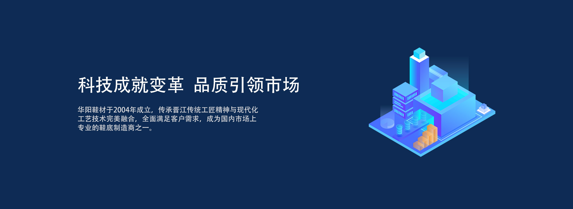 華陽鞋材于2004年成立,傳承晉江傳統(tǒng)工匠精神與現(xiàn)代化工藝技術(shù)完美融合,全面滿足客戶需求,成為國內(nèi)市場上專業(yè)的鞋底制造商之一。多年來,華陽鞋材自主研發(fā)及引進最先進智能生產(chǎn)設(shè)備,致力于生產(chǎn)EVA一次(IP)成型鞋底、EVA二次(MD)成型鞋底、TPR鞋底、RB(橡膠)鞋底,TPU鞋底及配件及底材組合。